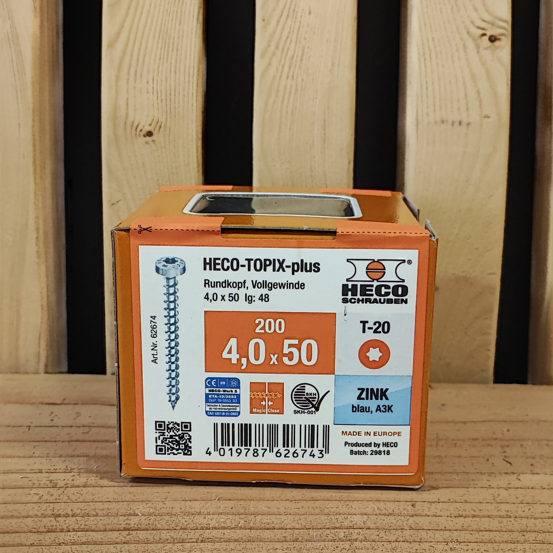 Plage de prix : 17,51€ à 47,64€Boite de 200 Vis Terrasse resineuse 5.0 x 60 à 5.0 x 80 – HECO-TOPIX-Plus A2